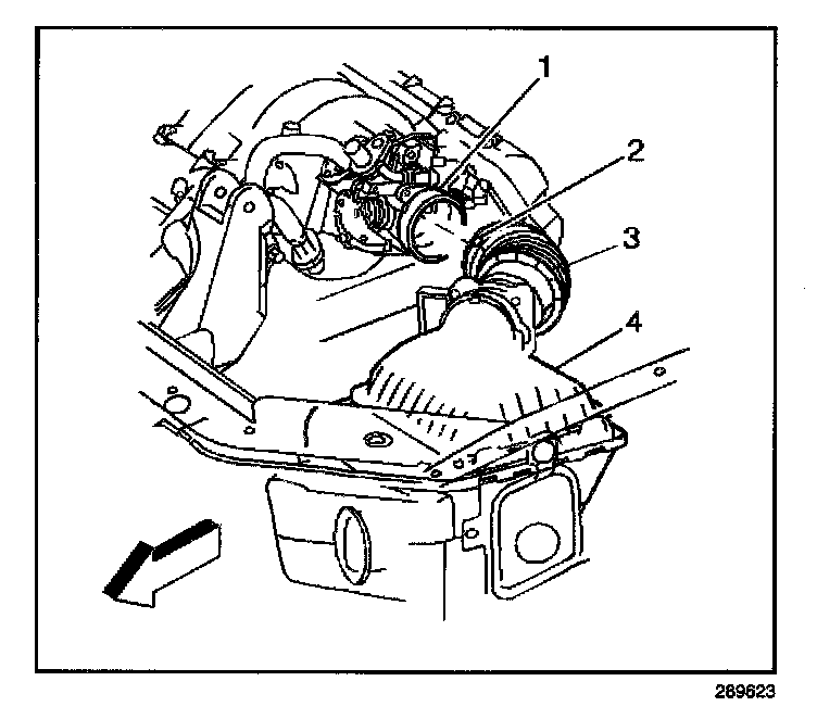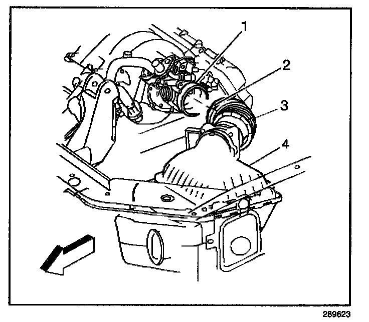 2. Remove the screws from the upper air cleaner housing (4) and remove the housing from the vehicle.
