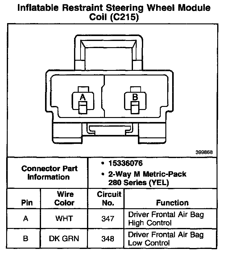 Inflatable Restraint Steering Wheel Module Coil (C215):