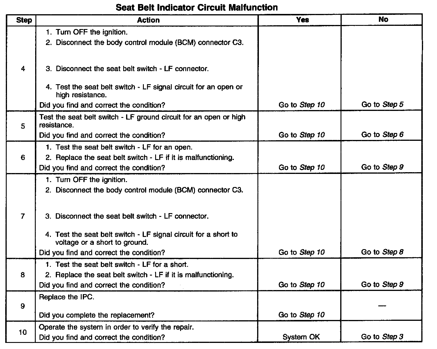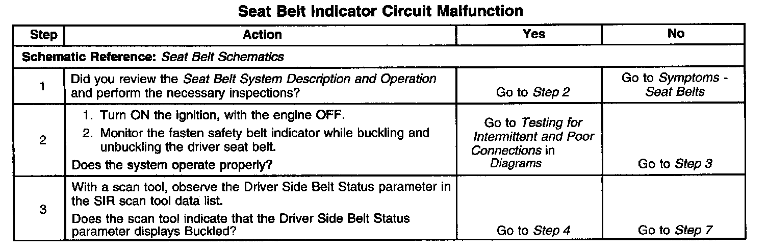 SEAT BELT INDICATOR CIRCUIT MALFUNCTION