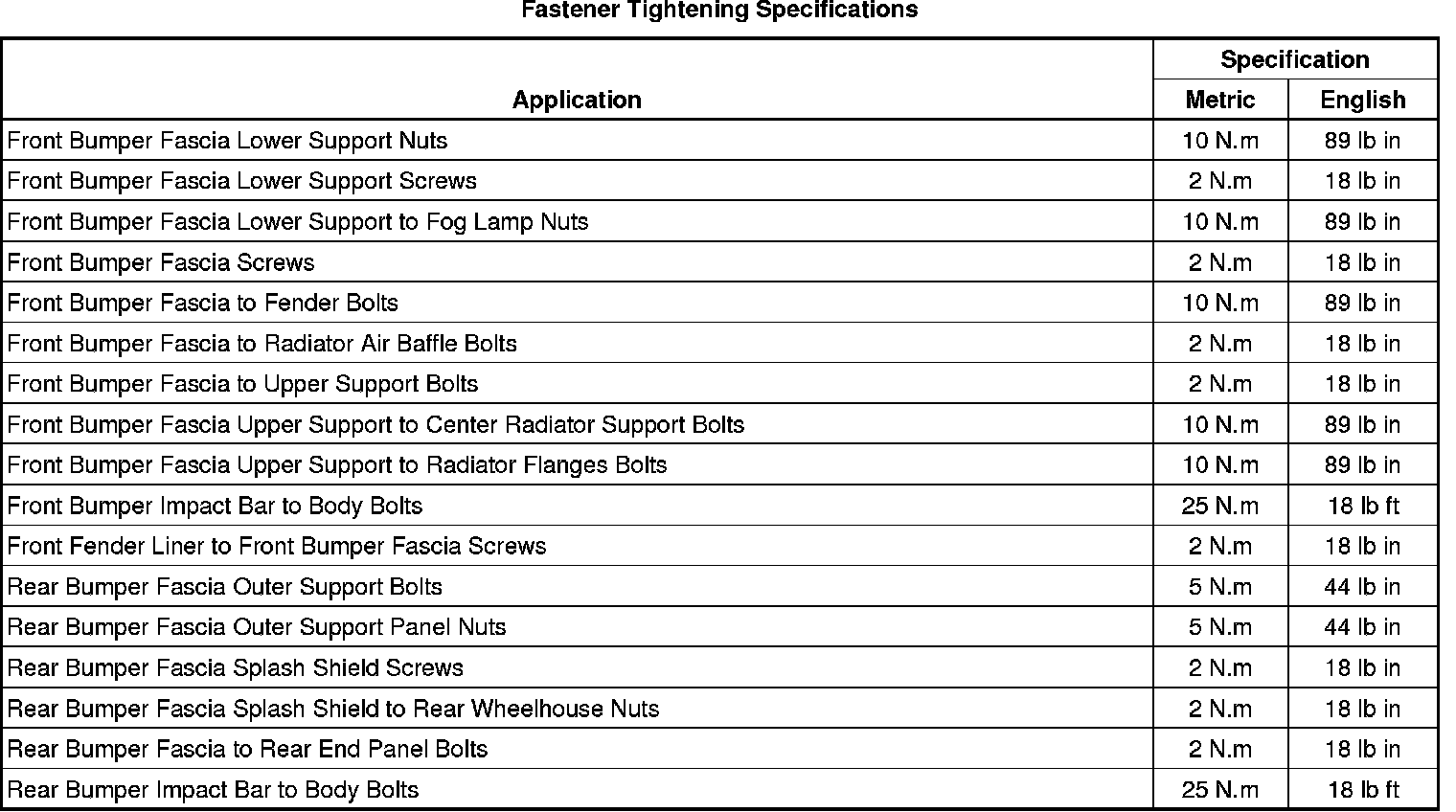 Fastener Tightening Specifications