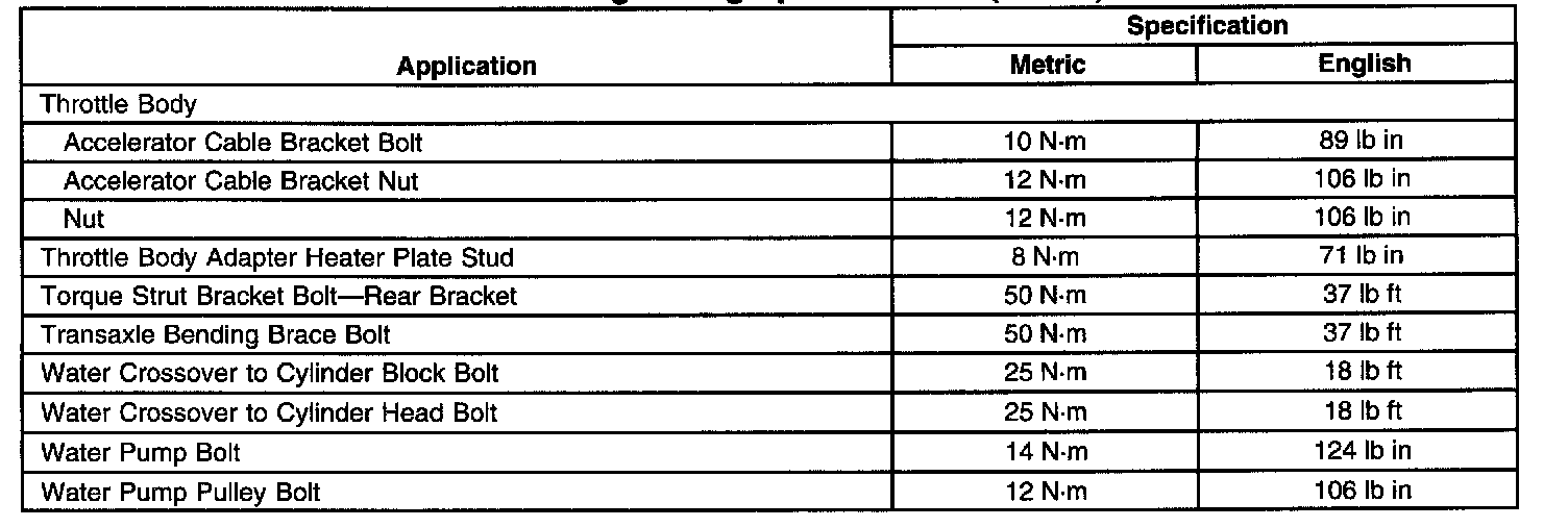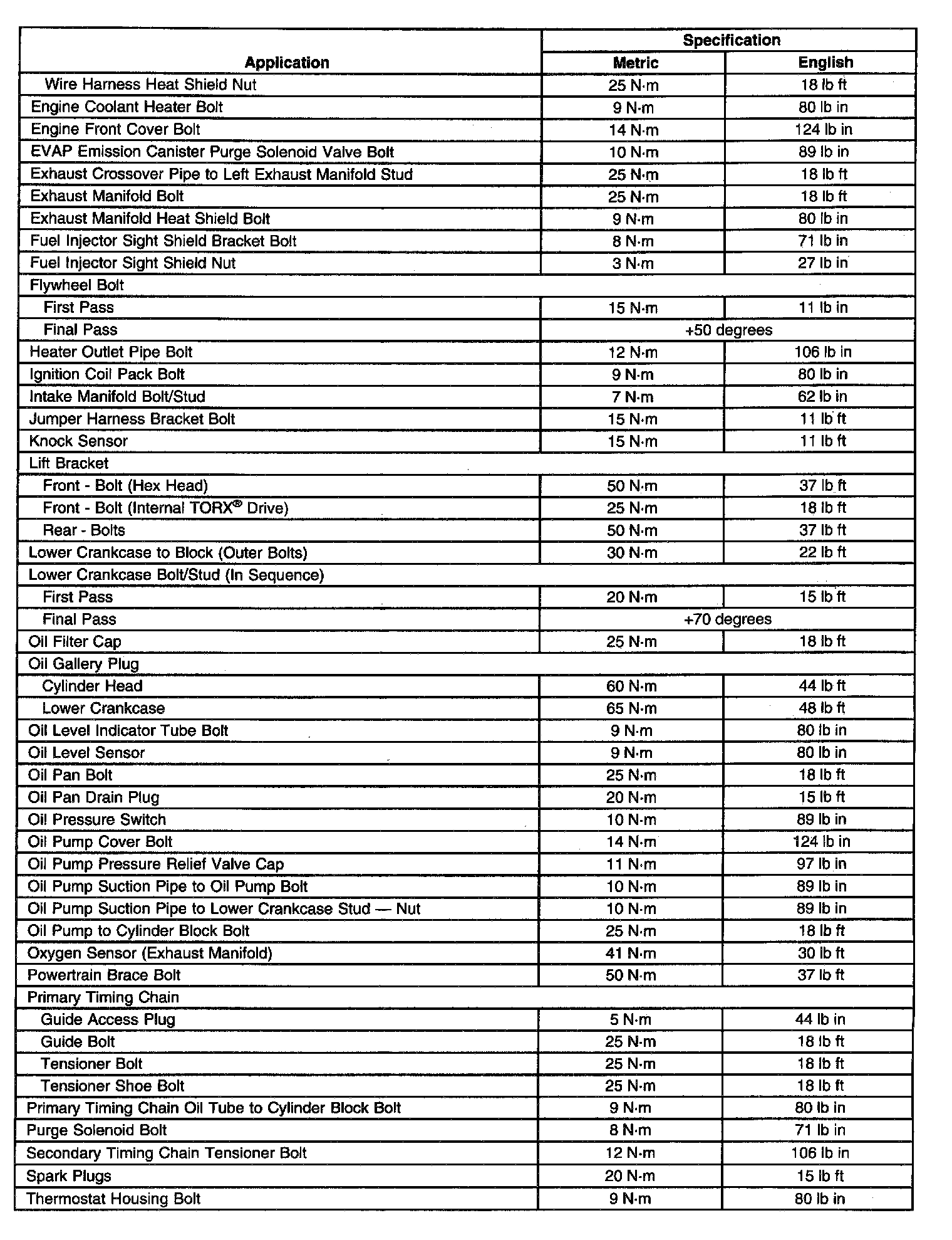 Fastener Tightening Specifications