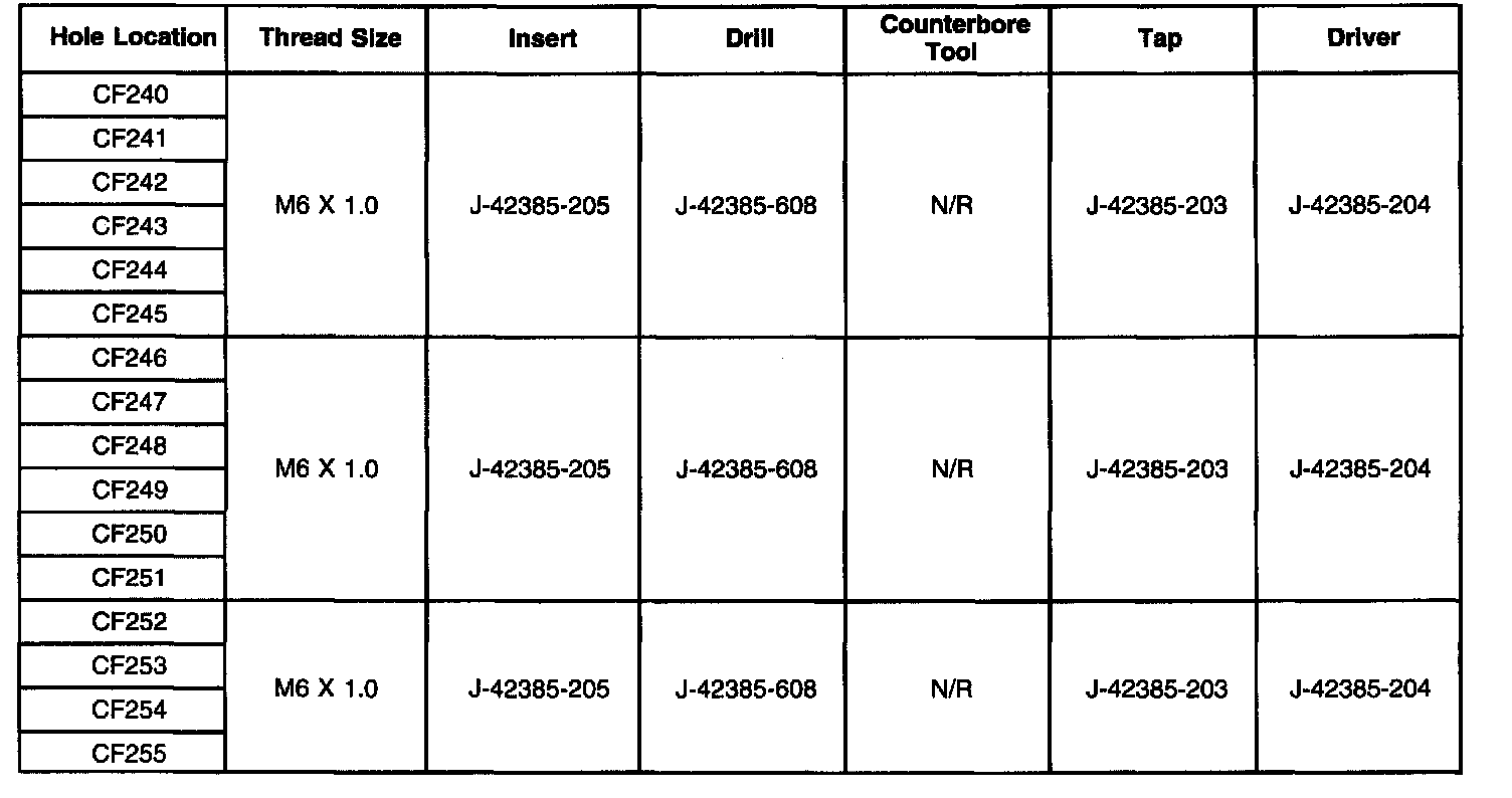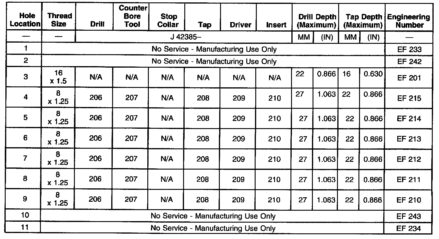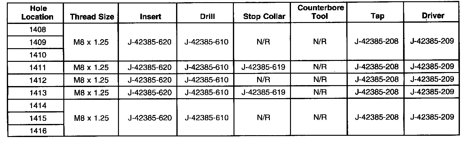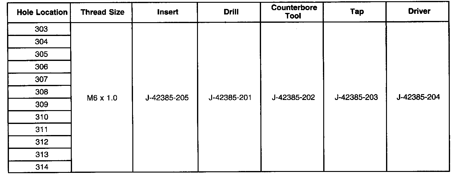 Thread Repair SpecificationsCylinder Block - Front Face