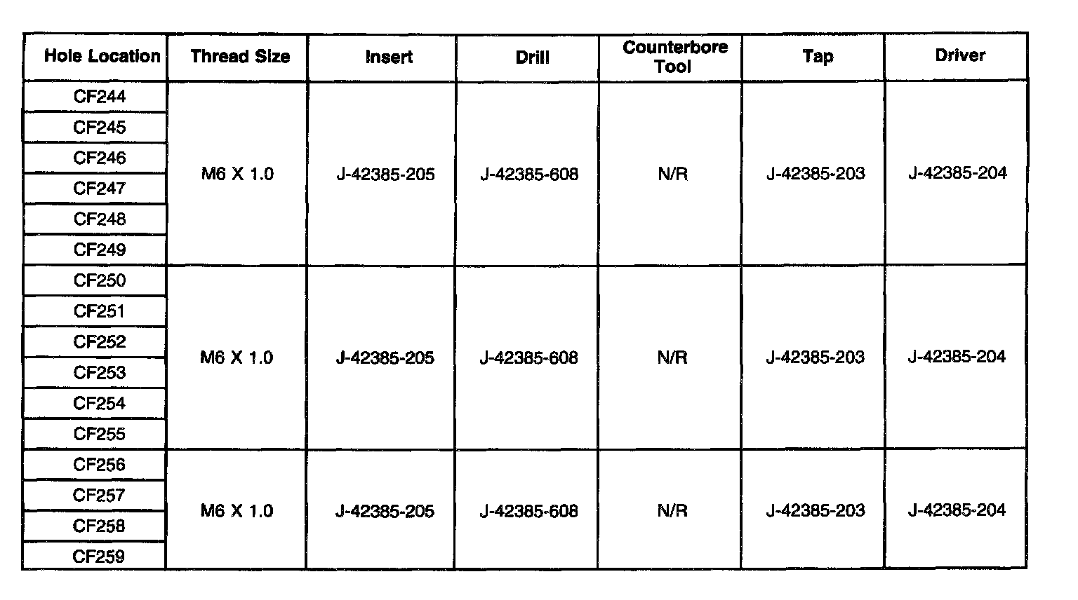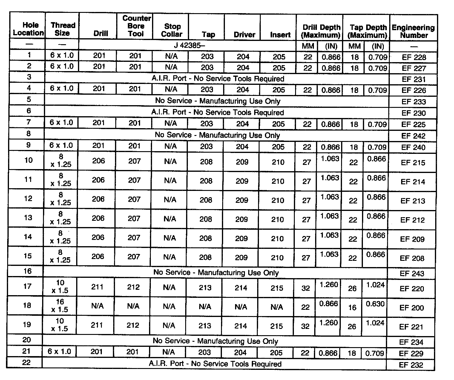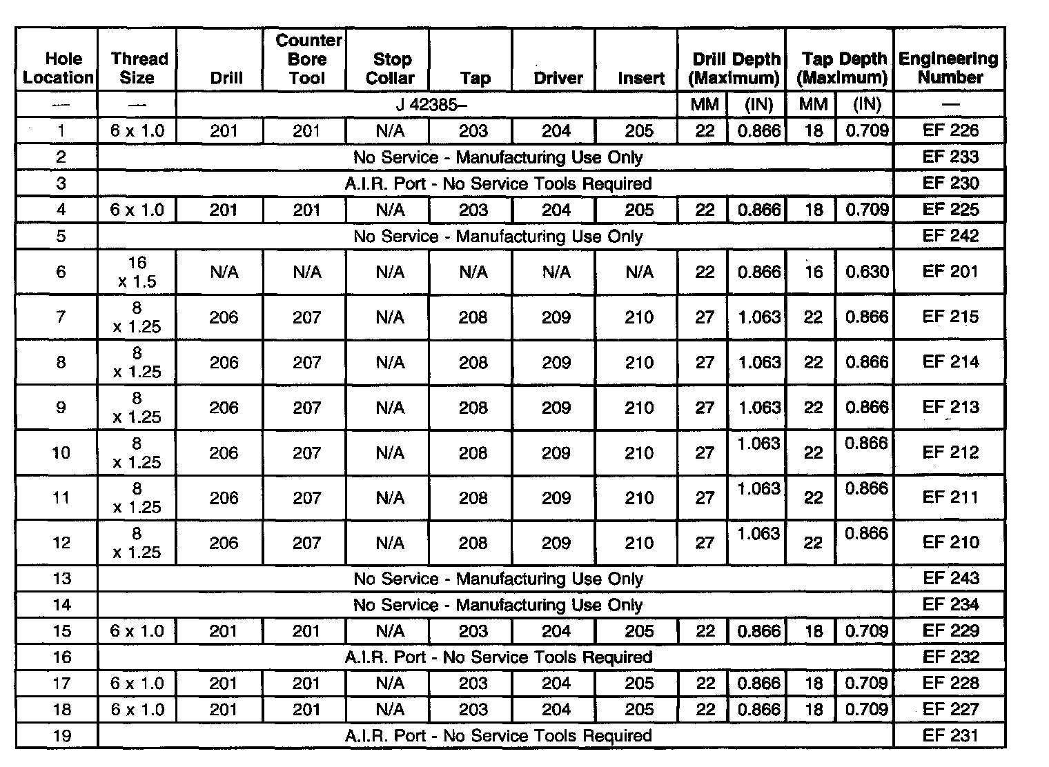Thread Repair SpecificationsCylinder Block - Front Face