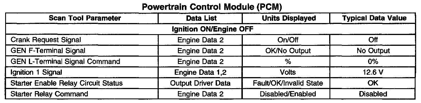 Scan Tool Data List - Powertrain Control Module (PCM)