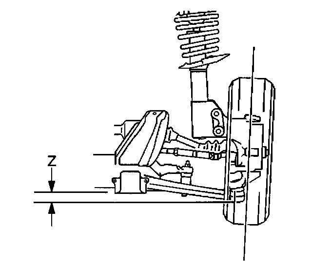 The Z height dimension measurement determines the proper ride height for the front end of the vehicle. There is no adjustment procedure. Repair may require replacement of suspension components.