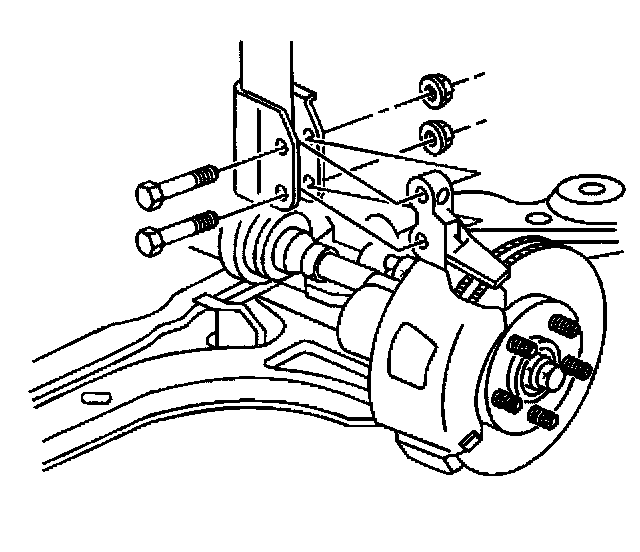 2. Remove the tire and wheel assembly. Refer to Tire and Wheel Removal and Installation.