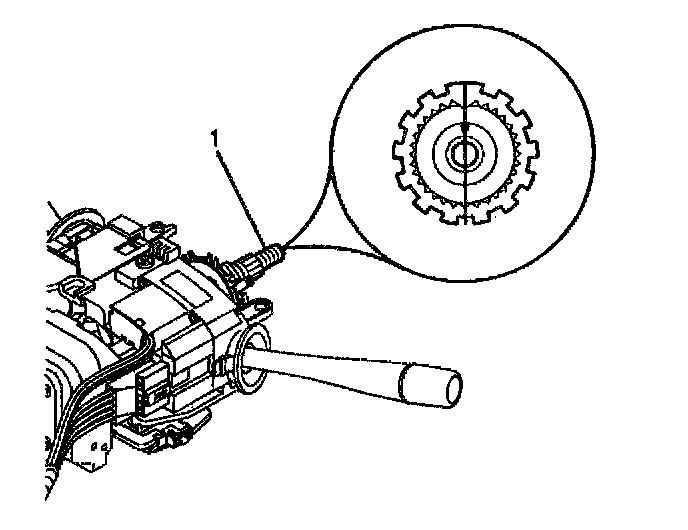 - The block tooth (1) of the steering shaft assembly is in the 12 o'clock position.