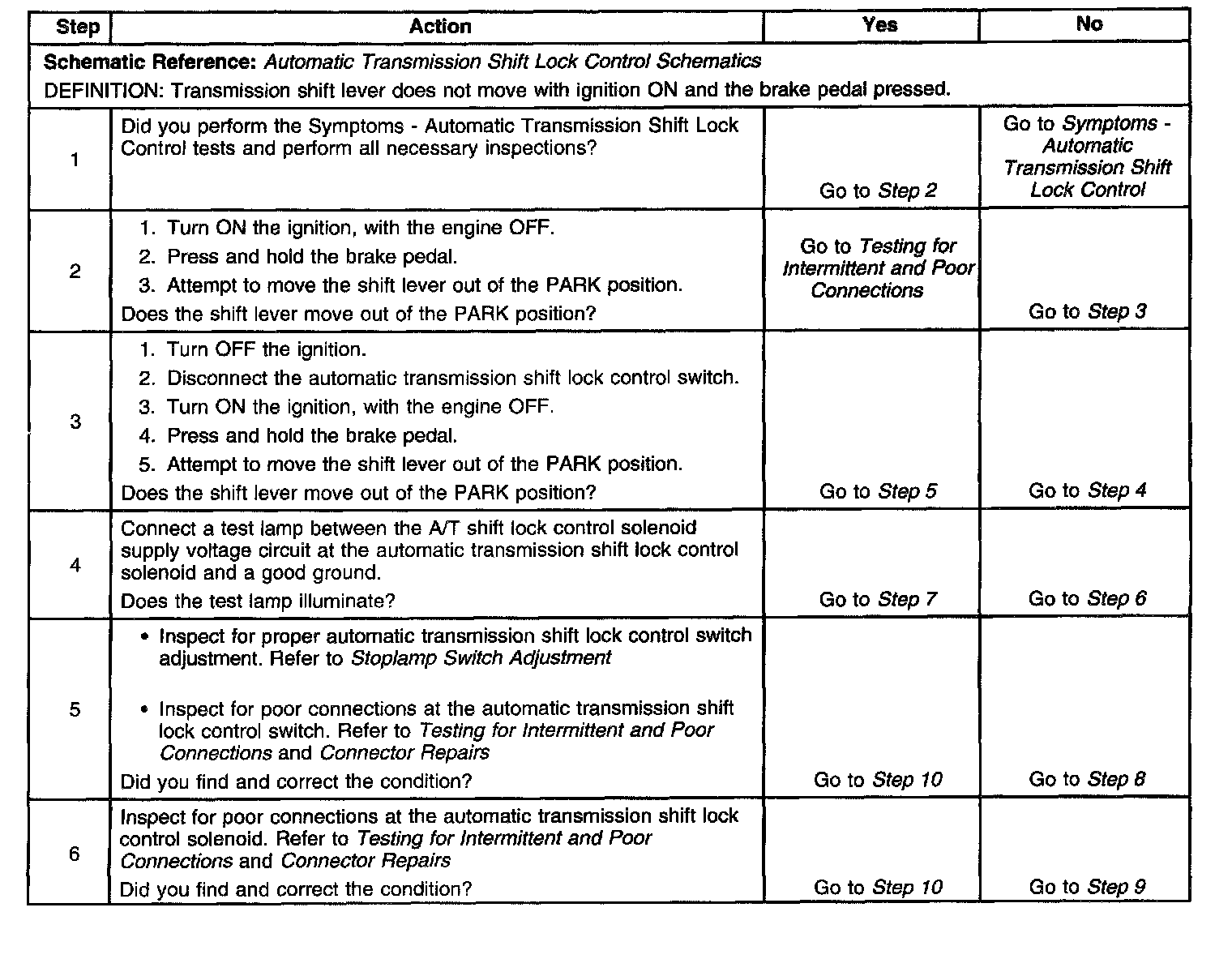 Shift Lever Does Not Move With Brake Pedal Depressed