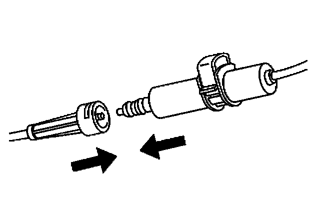 15. Depress the adjuster clip once. This mobilizes the adjuster housing toward the transaxle end fitting.