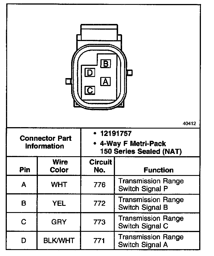 Transmission Range Switch C2 Connector, Wiring Harness Side