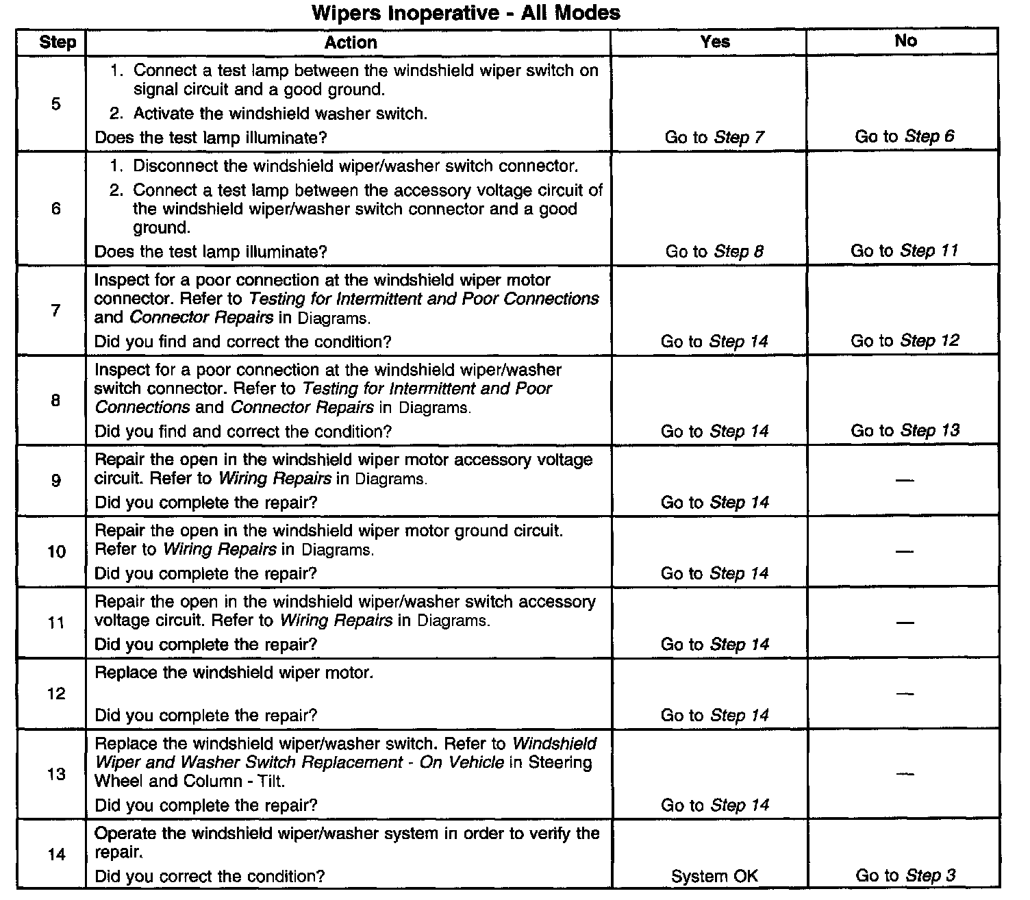 Wipers Inoperative - All Modes