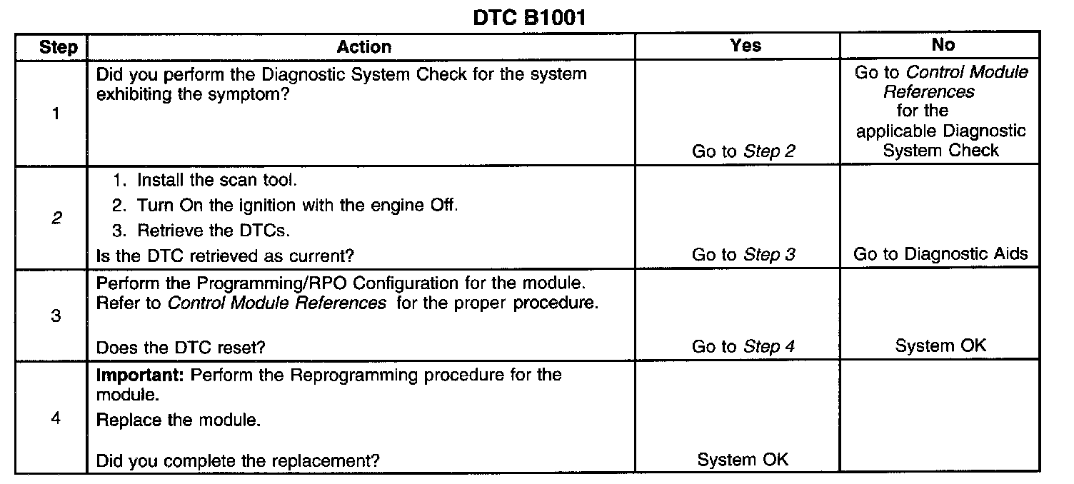 ^ A current DTC B1001 will clear when the module is properly programmed.