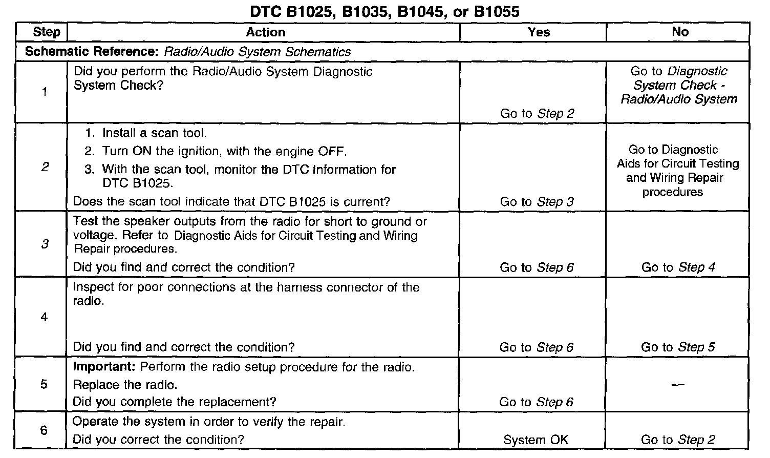 The numbers below refer to the step numbers on the diagnostic table.