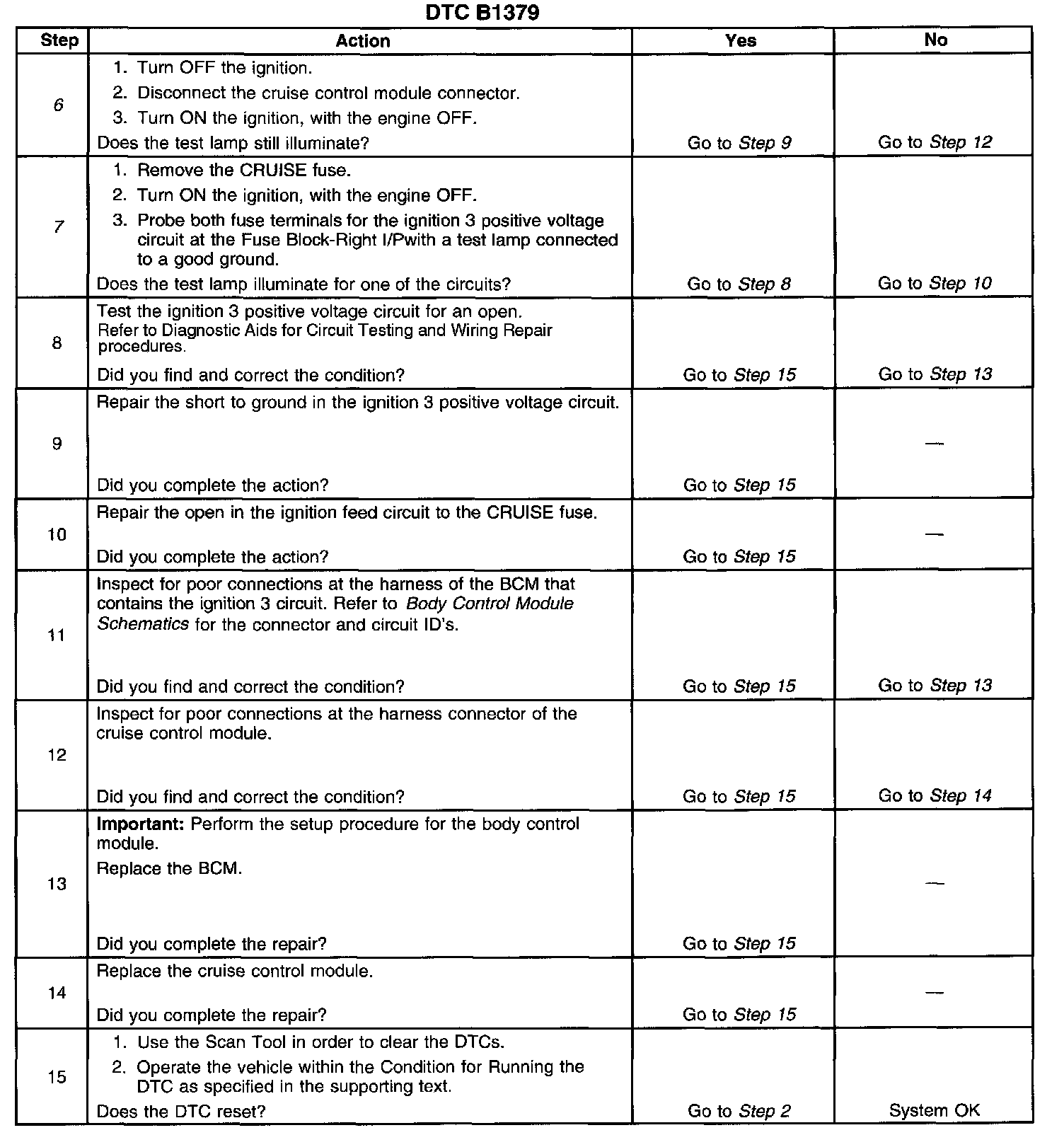 ^ A current DTC B1379 will clear when the malfunction is no longer present and the ignition switch is cycled.