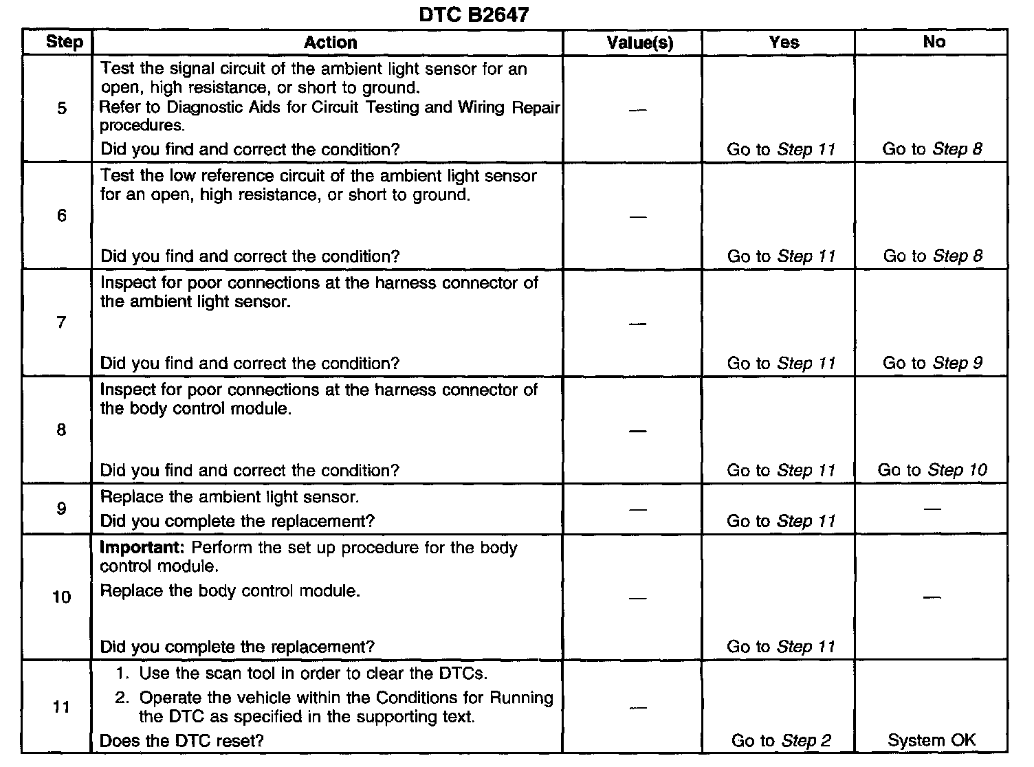 ^ The conditions for setting the DTC are no longer present.
