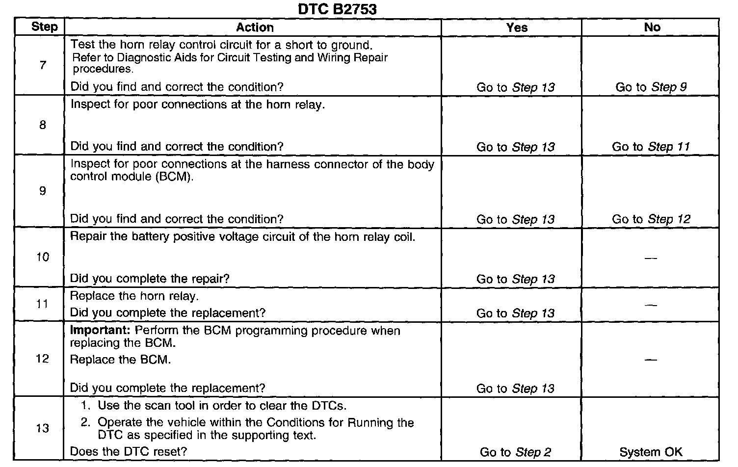 ^ The BCM stores DTC B2753 in memory.