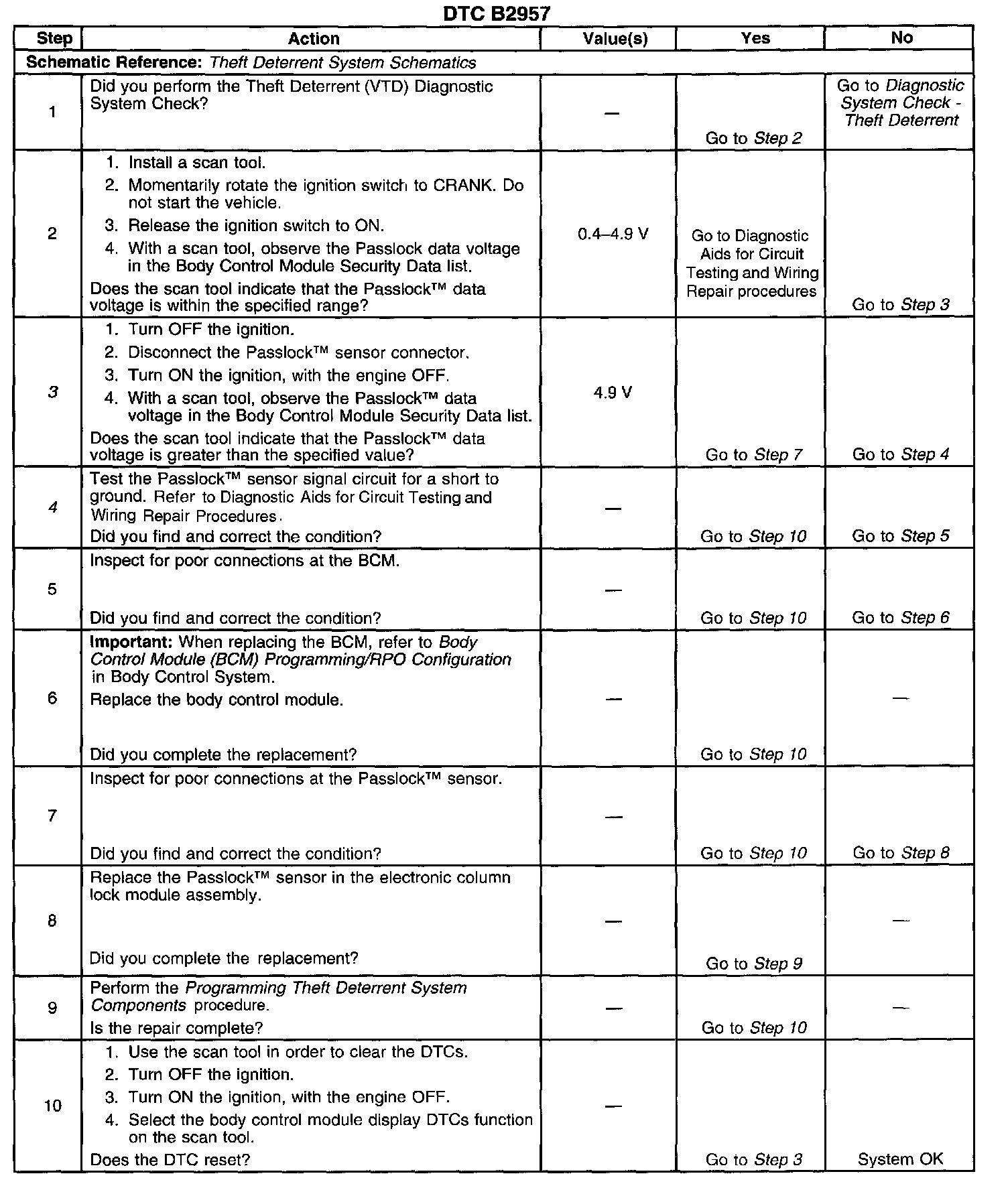 ^ Inspect the Passlock sensor harness for an intermittent or a short to ground. Refer to Diagnostic Aids for Circuit Testing and Wiring Repair procedures.