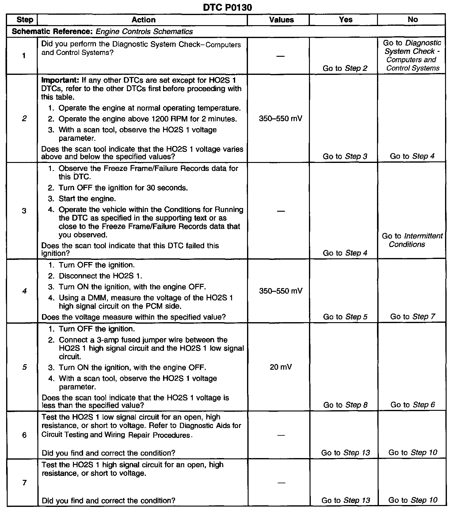 The numbers below refer to the step numbers on the diagnostic table.