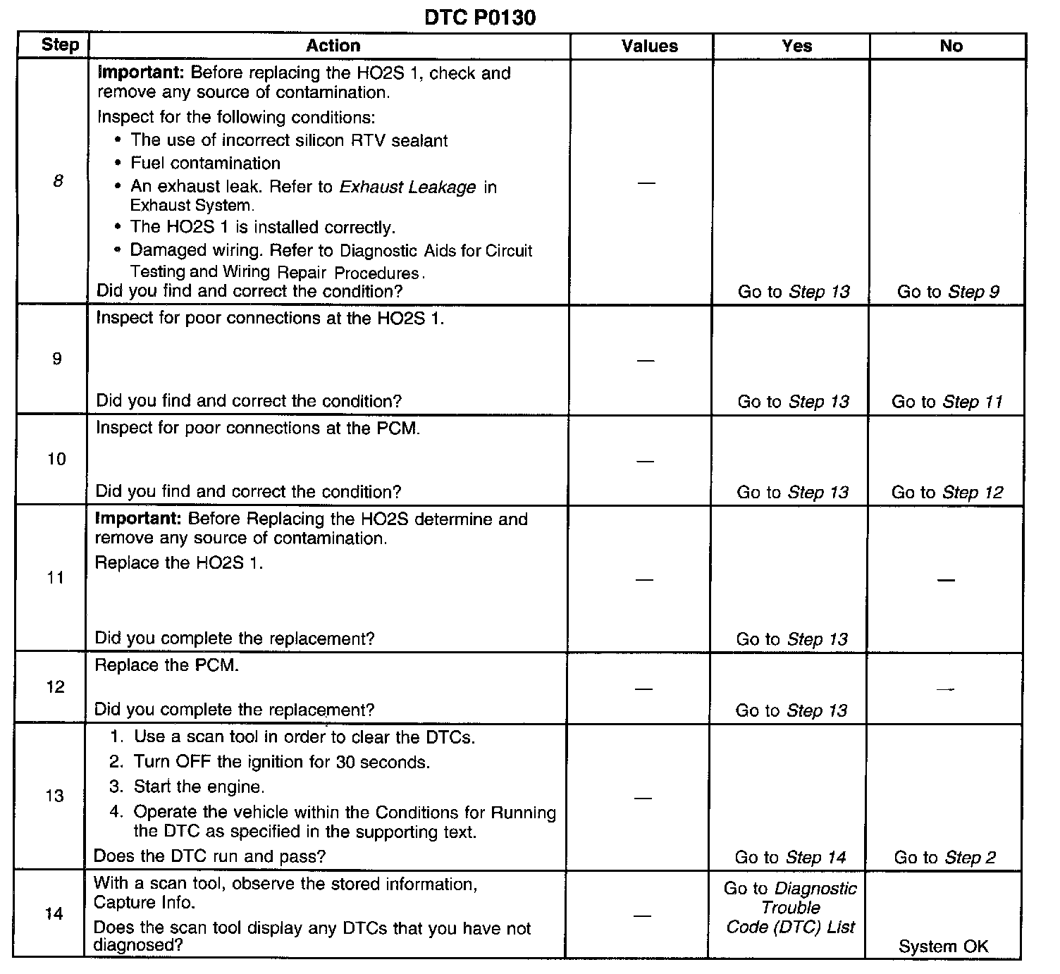 8. The Conditions listed in Step 8 may cause this DTC to set. Any source of contamination must be removed before replacing the HO2S 1.