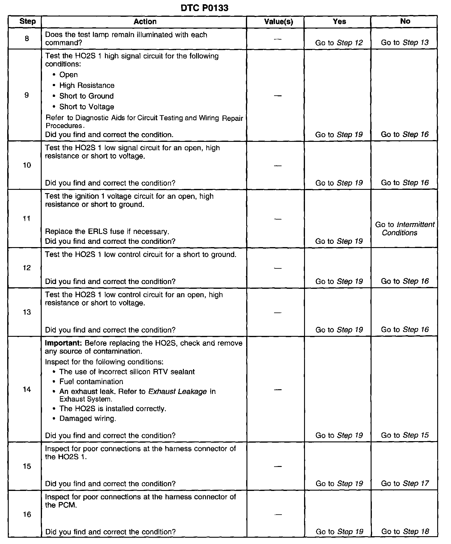 The numbers below refer to the step numbers on the diagnostic table.