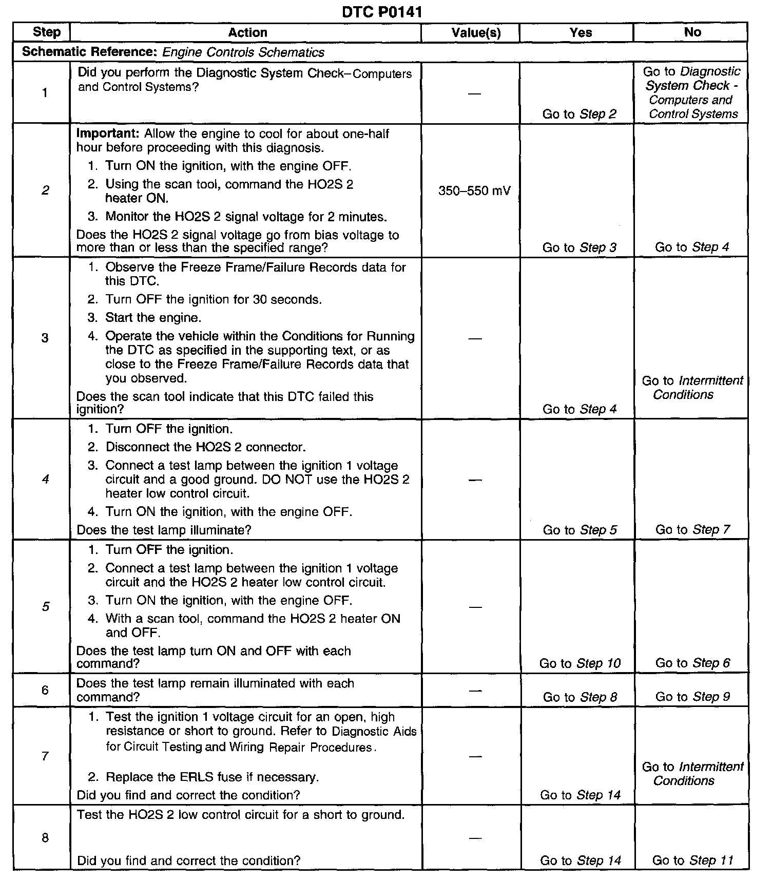 The numbers below refer to the step numbers on the diagnostic table.
