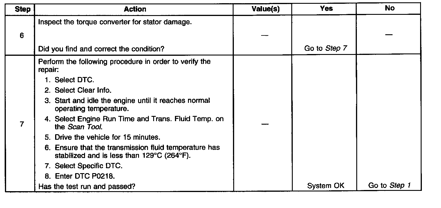 When the PCM detects a high transmission fluid temperature for a long period of time, then DTC P0218 sets. DTC P0218 is a type C DTC.