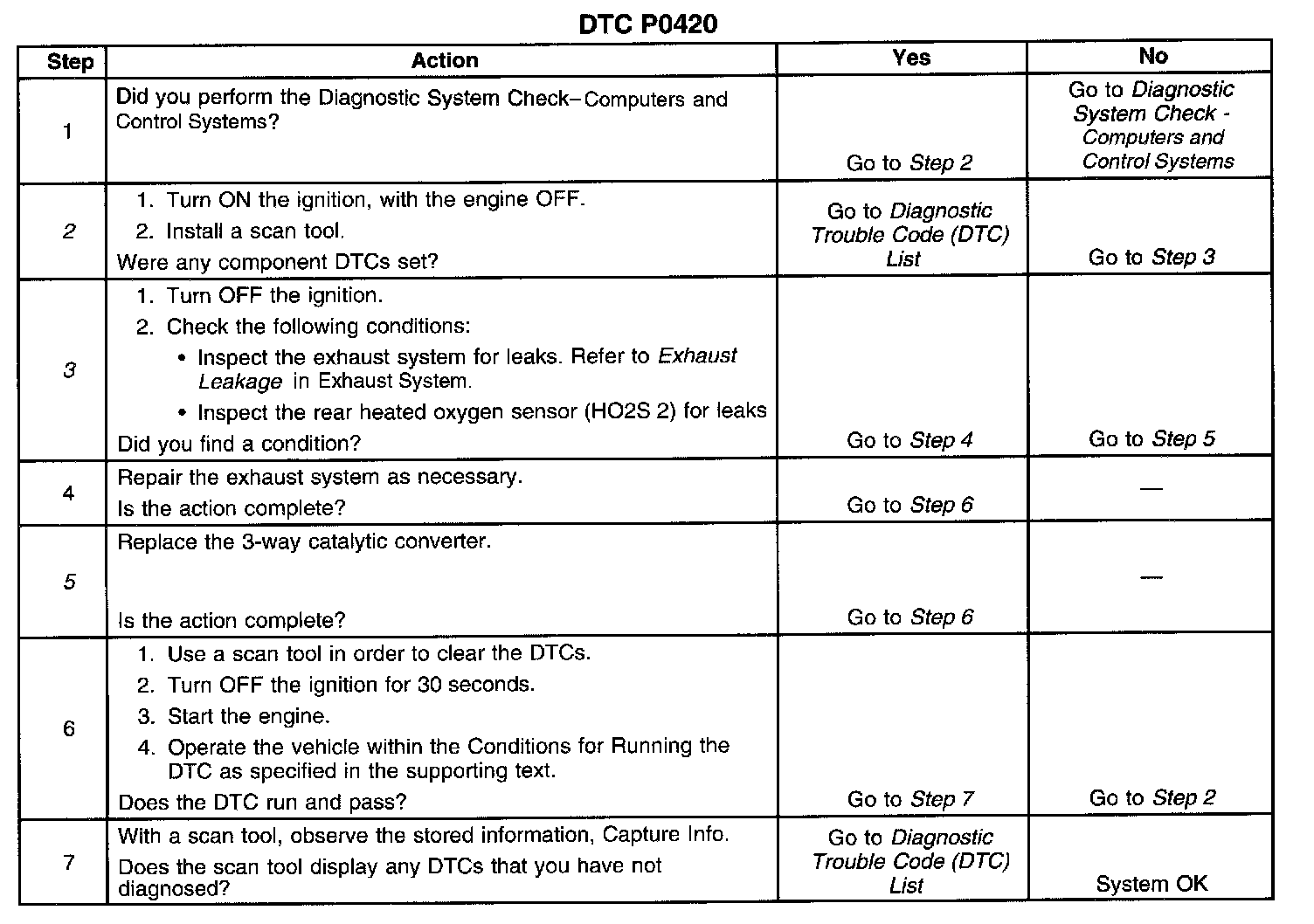 3. This step includes checks for conditions that can cause the 3-way catalytic converter to appear degraded. Before you proceed with this table, repair any conditions that you find.