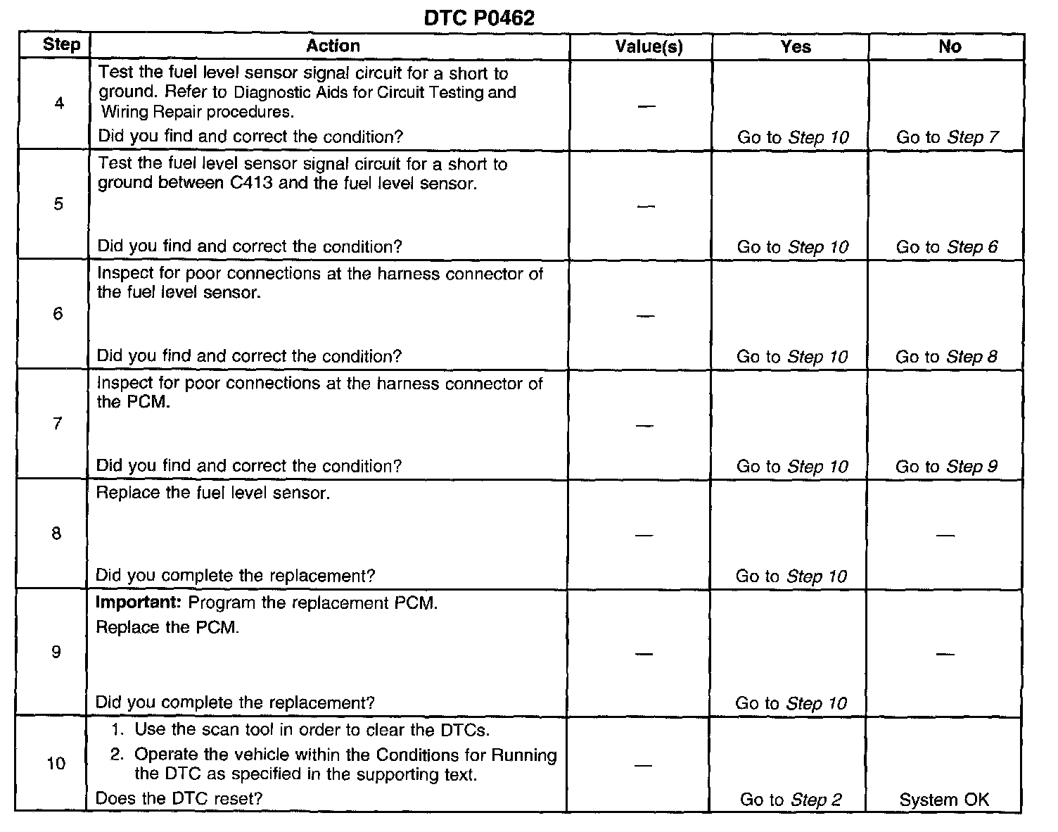 The number below refers to the step number on the diagnostic table.