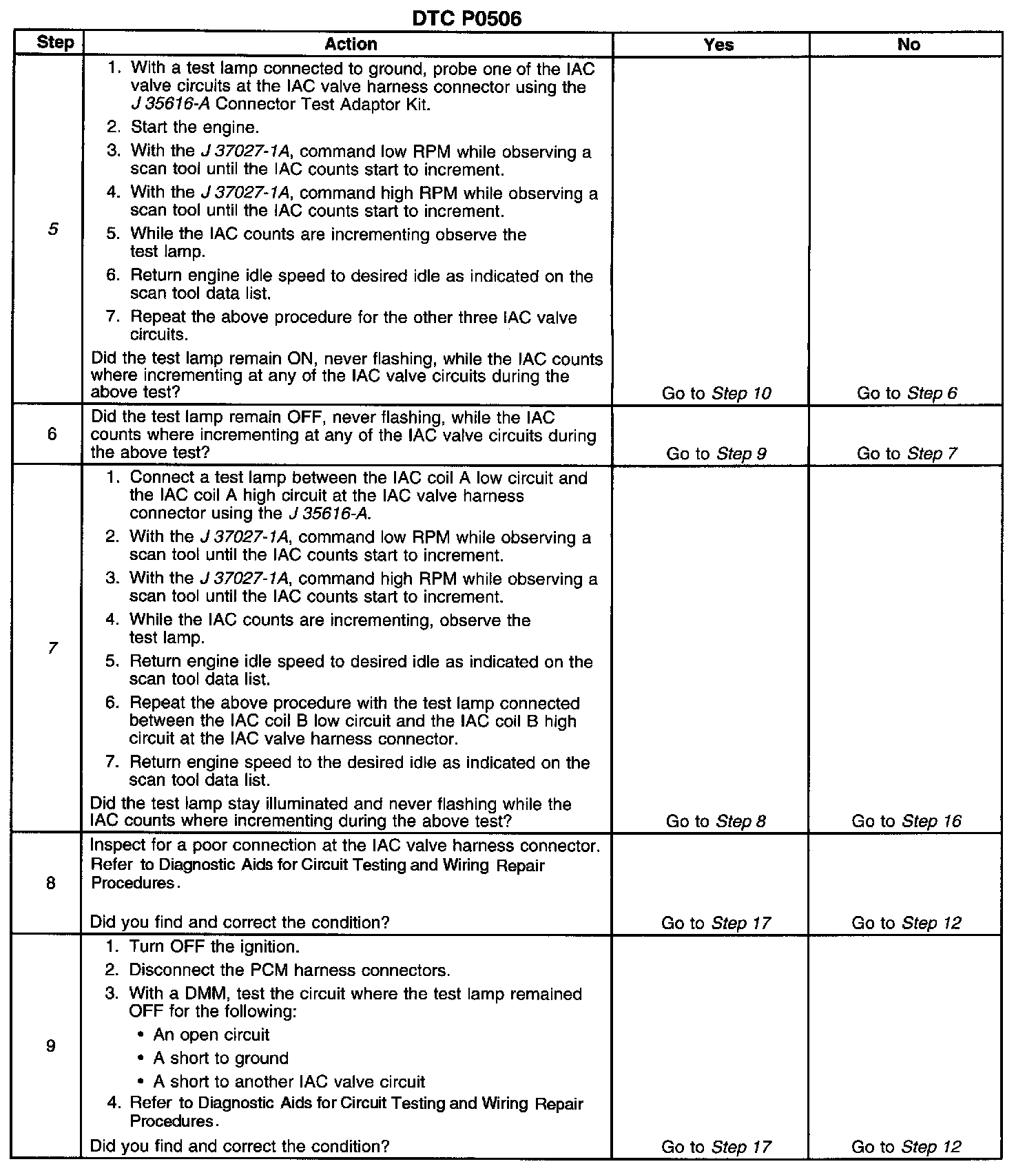 7. This test will determine the ability of the PCM to provide the IAC circuits with a ground. On a normal operating system the test lamp should not flash while the IAC counts are incrementing.