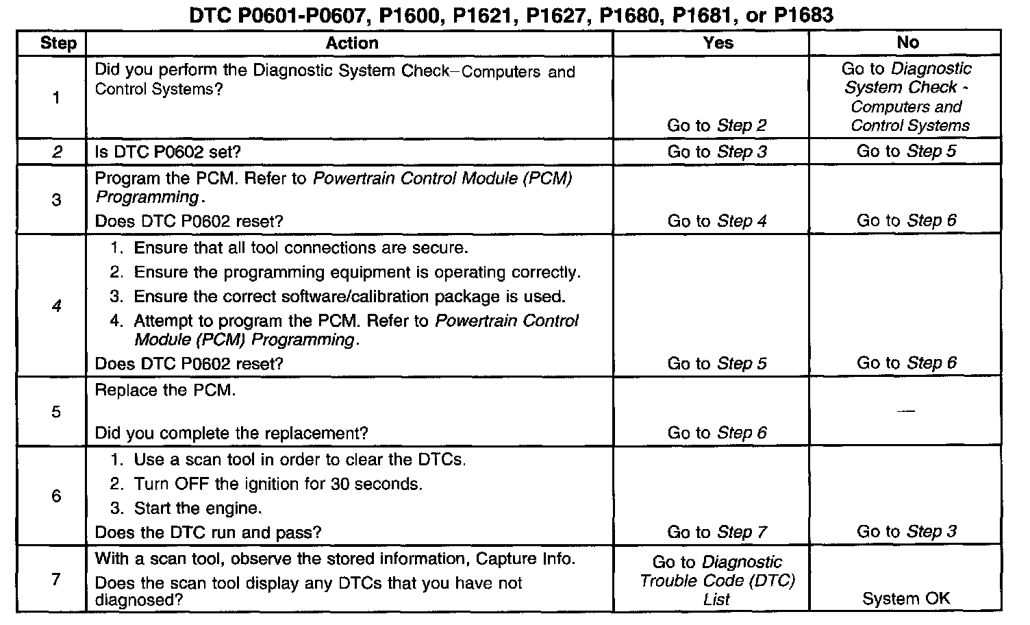 2. A DTC P0602 indicates the PCM is not programmed.