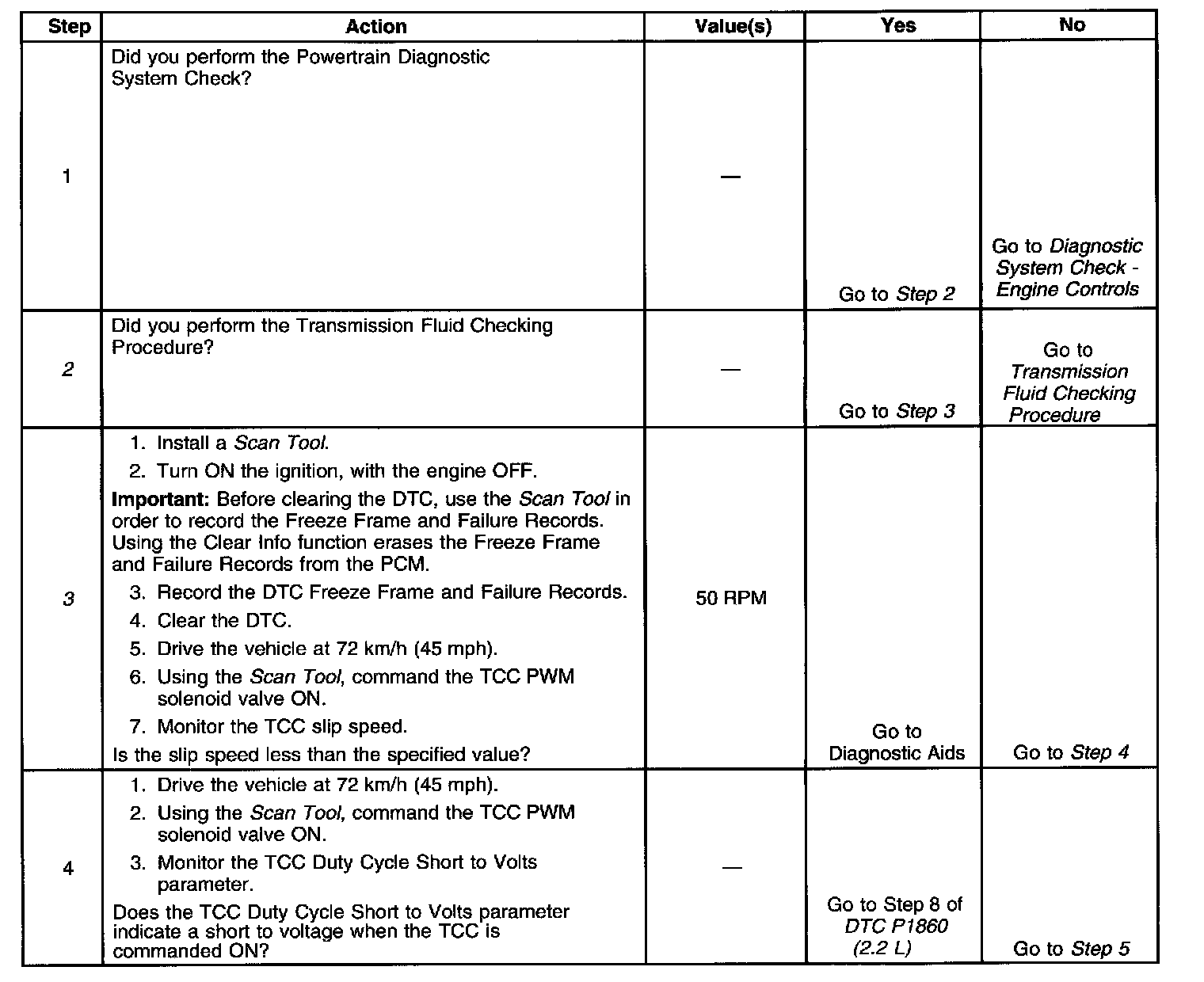 3. This step verifies that the TCC engages when commanded ON by the Scan Tool.