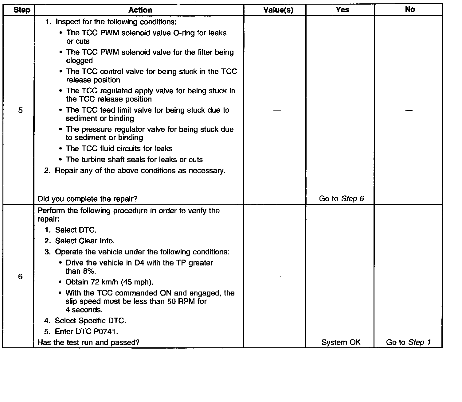 - No TCC stuck ON DTC P0742.