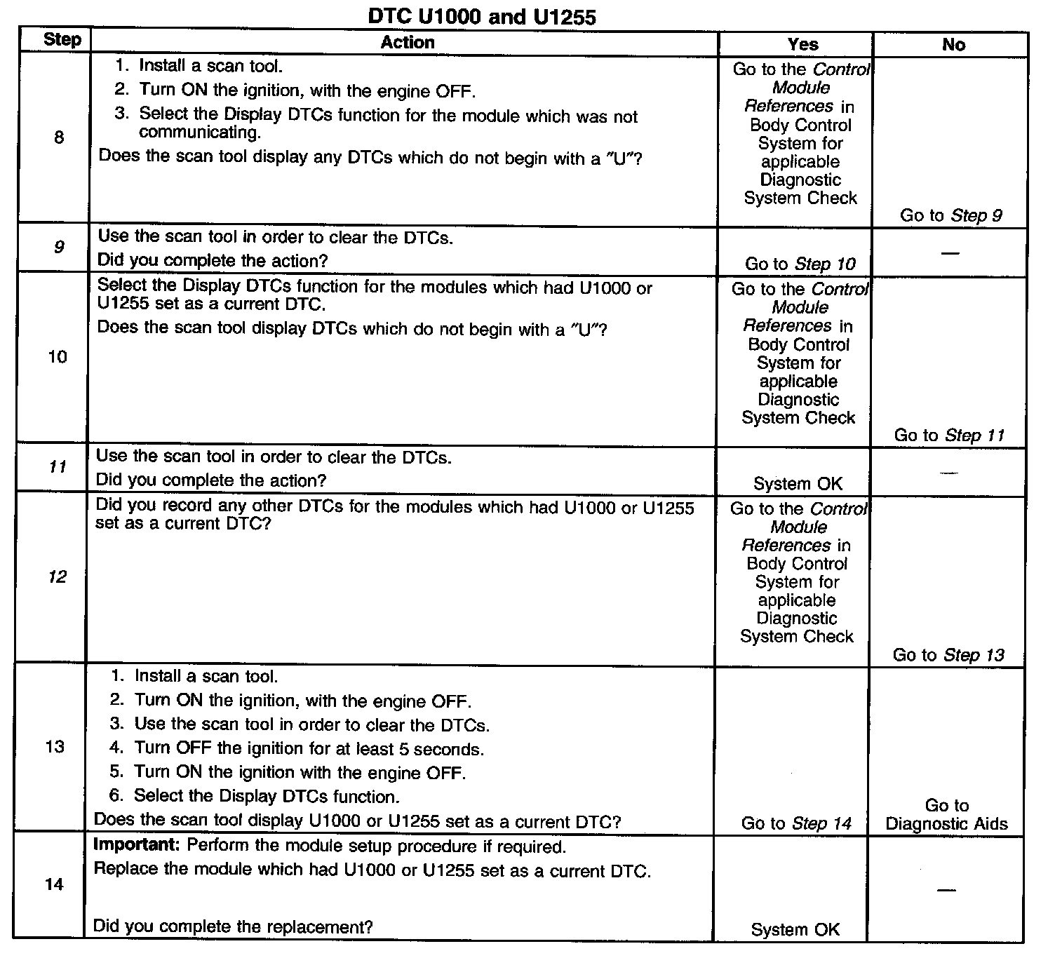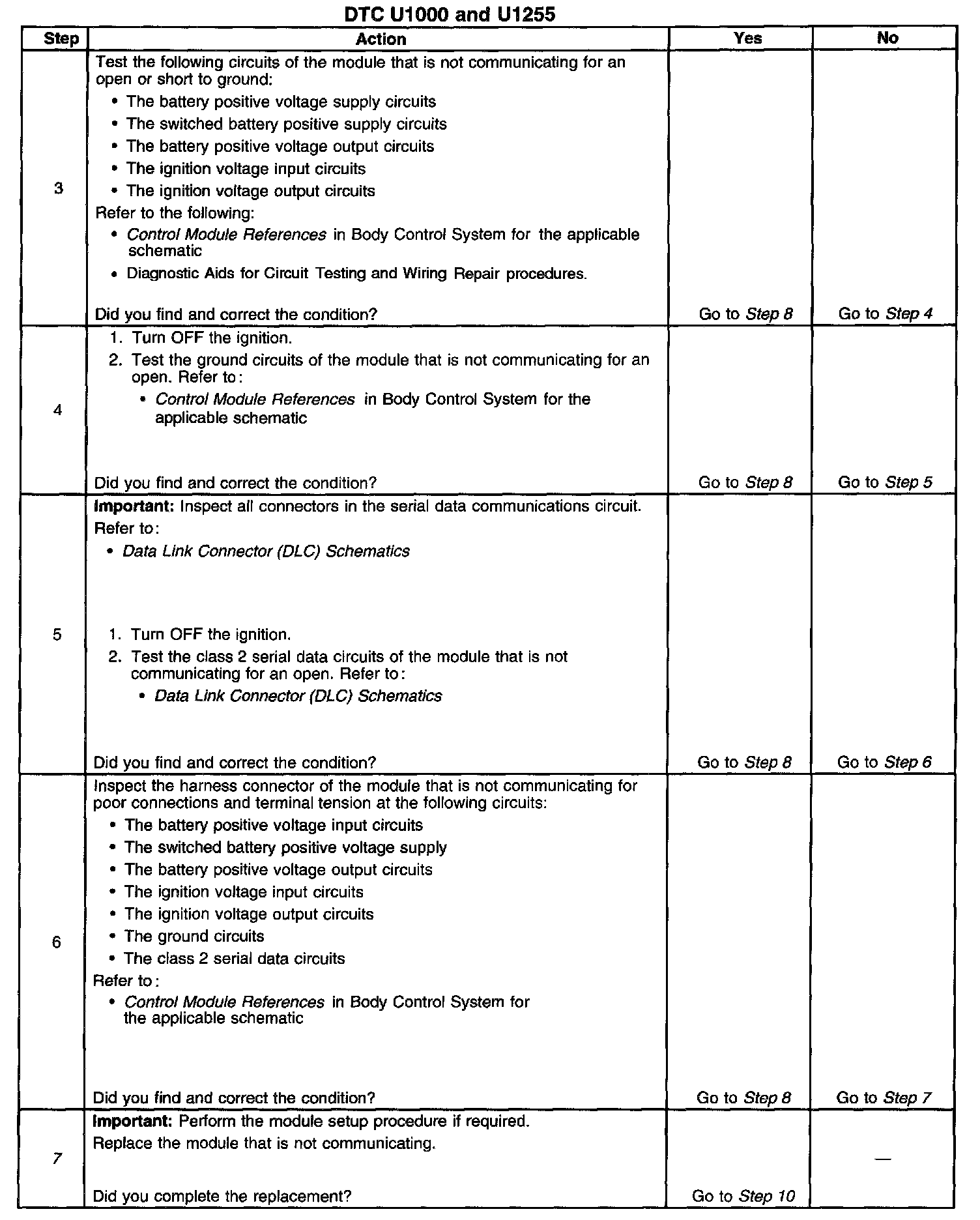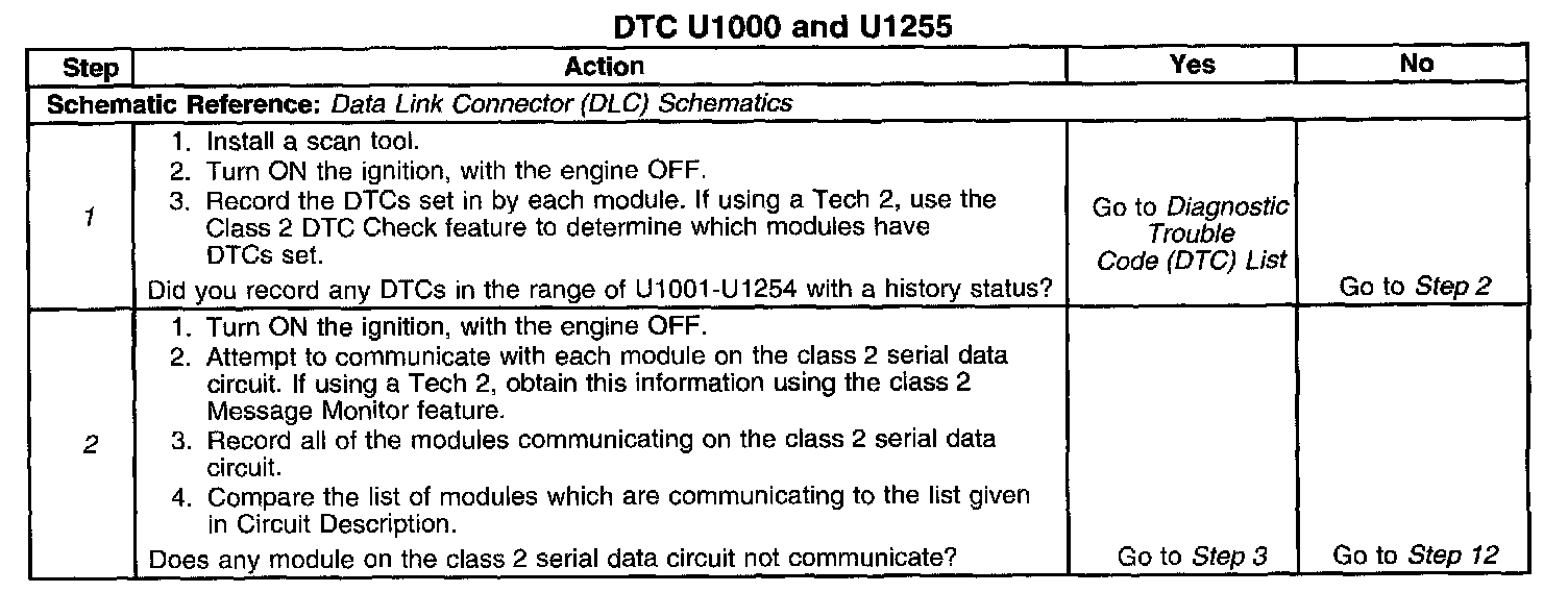 2. The modules not communicating are the likely cause of U1000 or U1255. The modules that are available on the class 2 serial data circuit are listed in the Circuit Description.