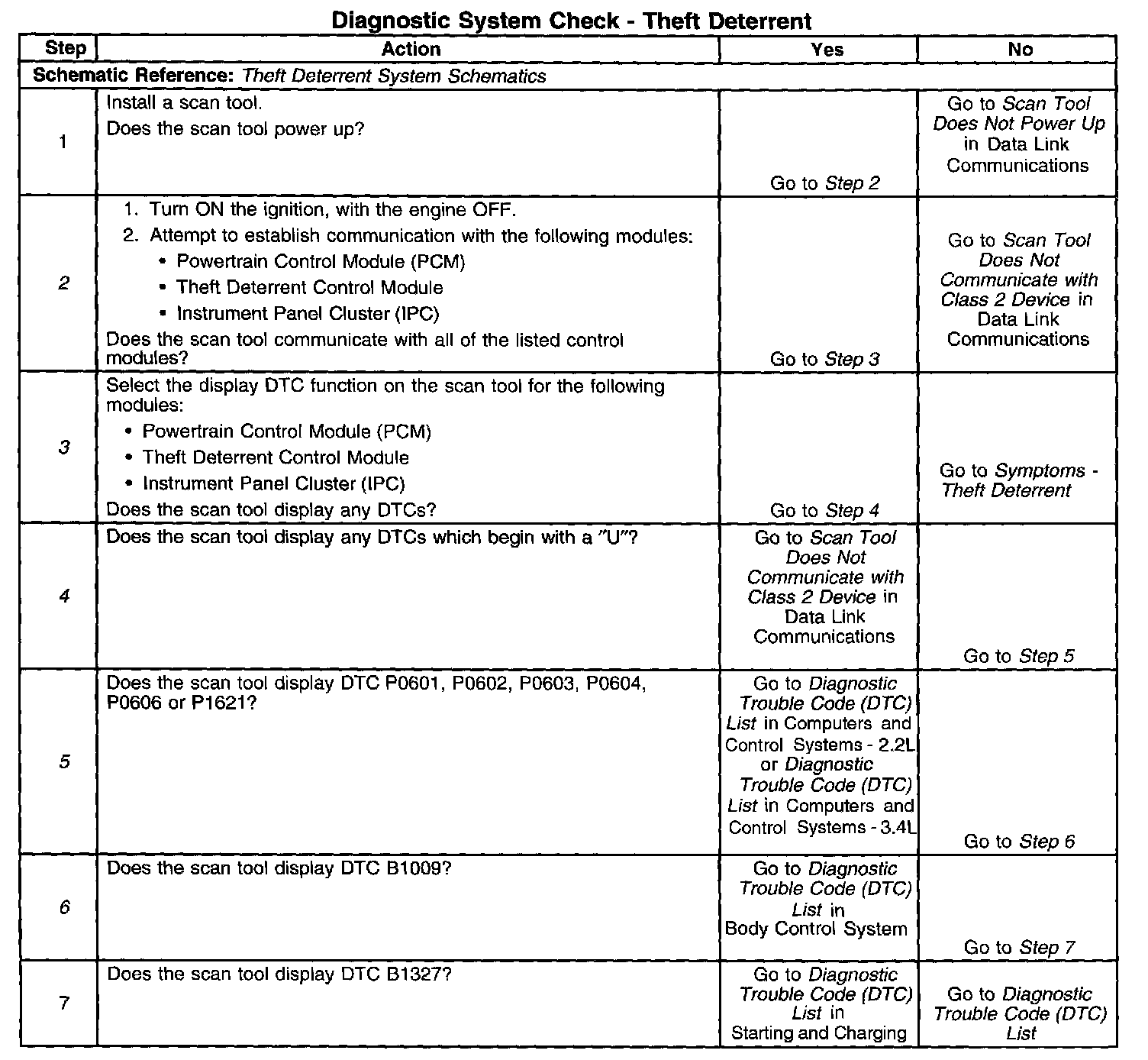 Diagnostic System Check - Theft Deterrent - Immobilizer - Some Export Vehicles