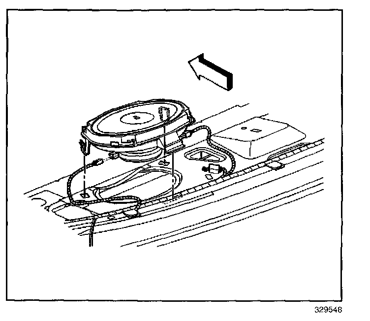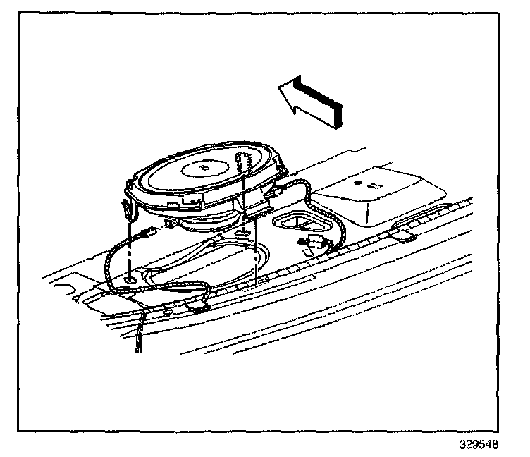3. Install the rear speaker. Making sure the plastic speaker tabs engage the rear shelf.