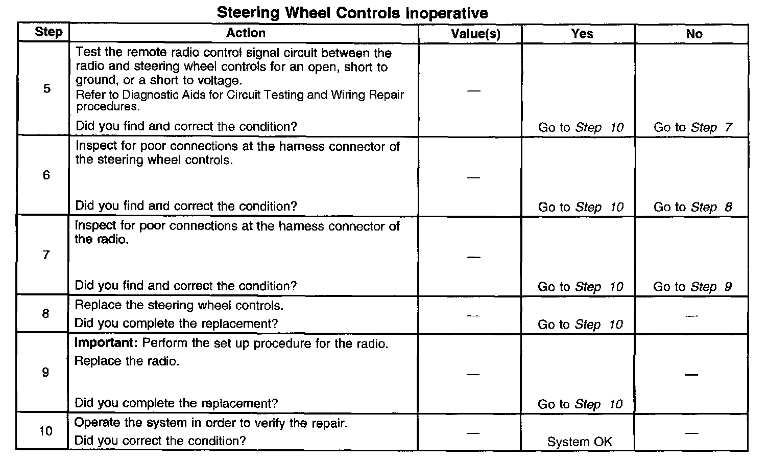 Steering Wheel Controls Inoperative