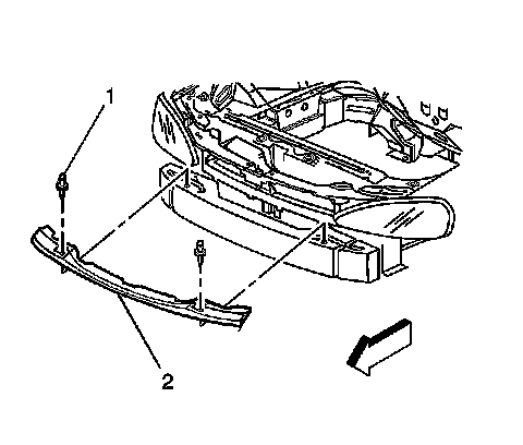 3. Remove the fascia support (2) from the front bumper impact bar.