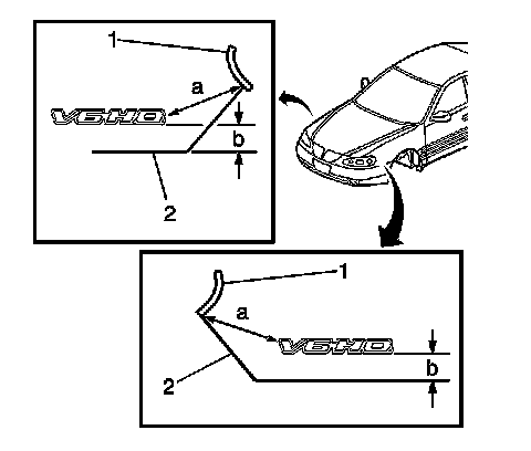 * Dimension (a) is 95 mm (3.740 in) from the edge of the headlamp seal (1) to the emblem/nameplate.