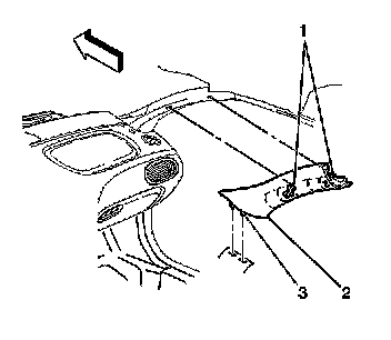 2. Apply inboard pressure to engage the clips (1) to the windshield pillar.