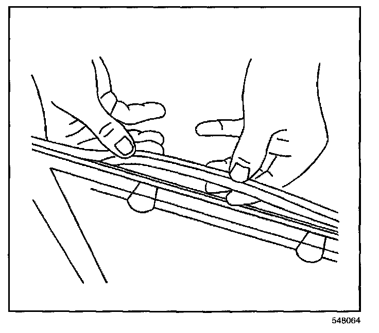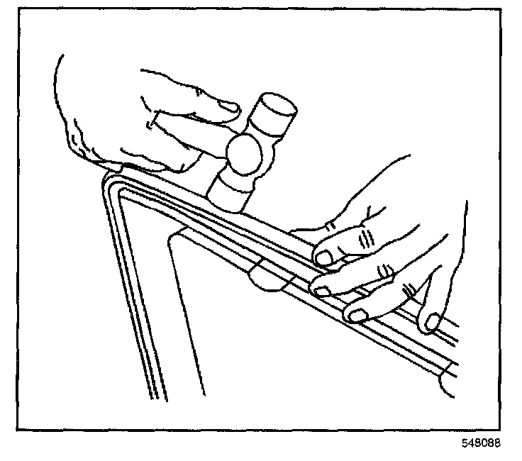 1. Position the sunroof glass panel seal onto the sunroof glass panel frame.