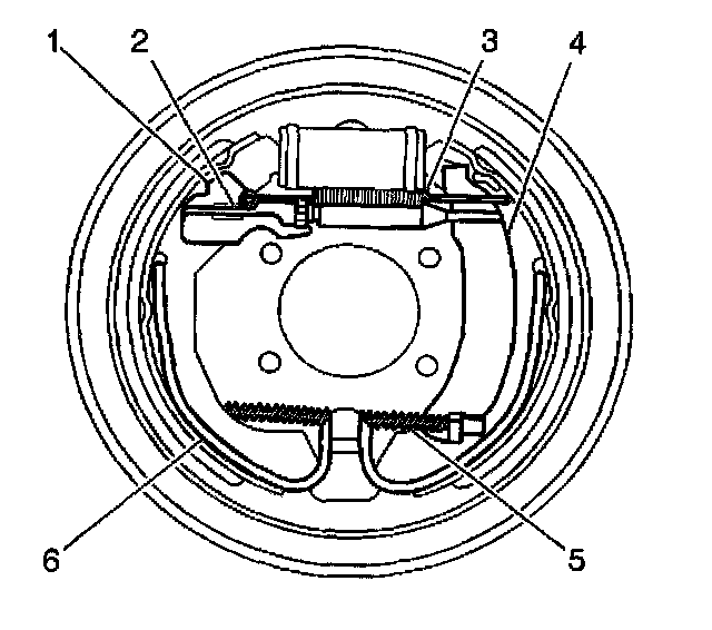 Drum Brake Hardware Inspection1. Visually inspect the drum brake system universal spring (6) for the following: