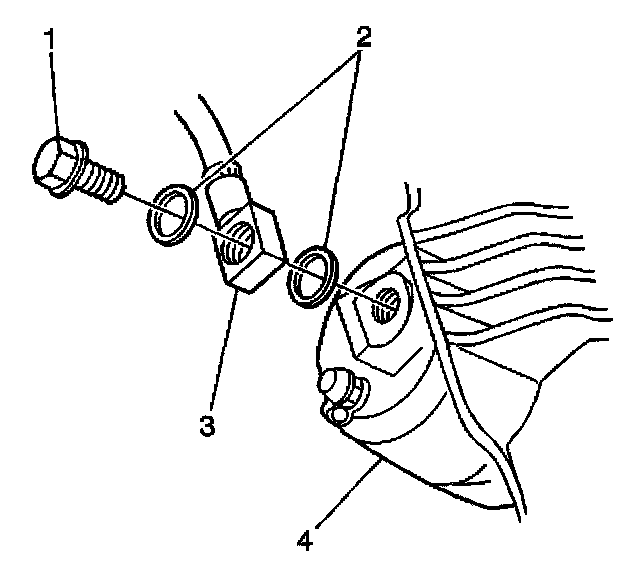 Important: Install the NEW copper brake hose gaskets (2).
