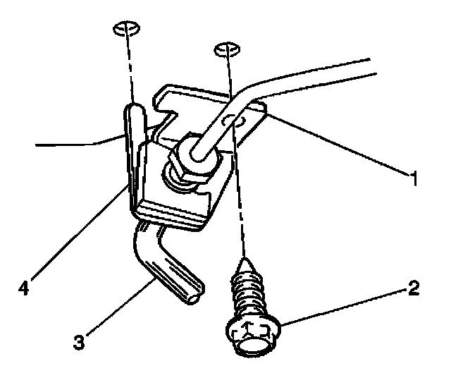 4. Install the retainer clip (4) to the brake hose (1).