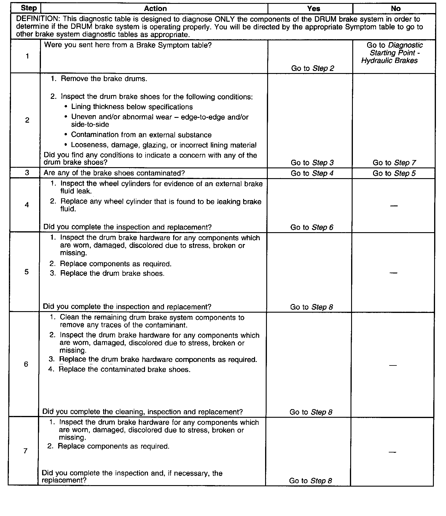 Drum Brake System Diagnosis