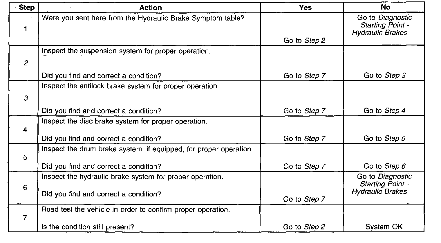 2.Suspension components that are not operating properly may cause a disturbance to the vehicle during application of the brake system.