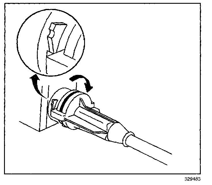 5. Disconnect the cruise control cable from the cruise control module by turning the cable � turn counterclockwise.
