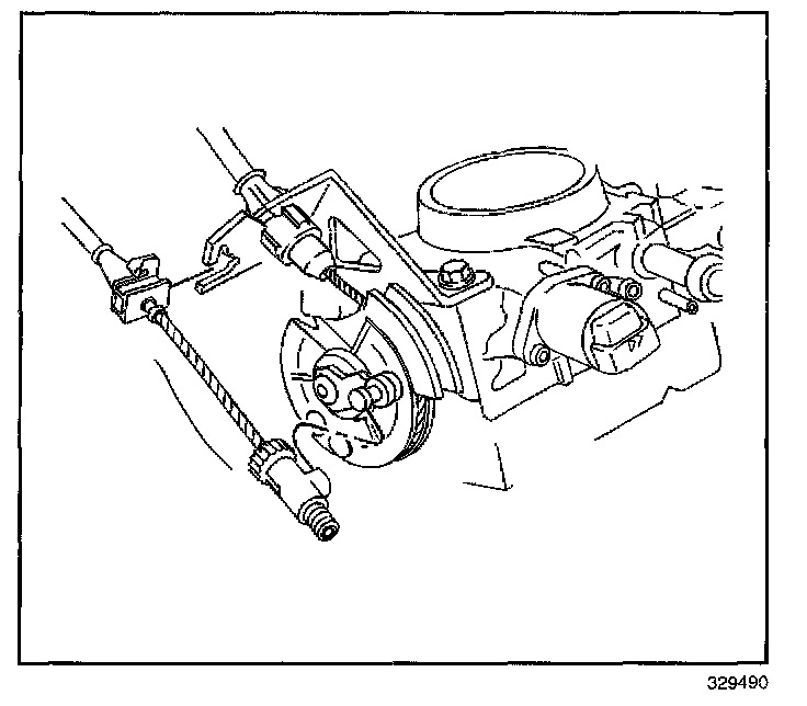 8. Connect the cruise control cable to the throttle body cam lever.