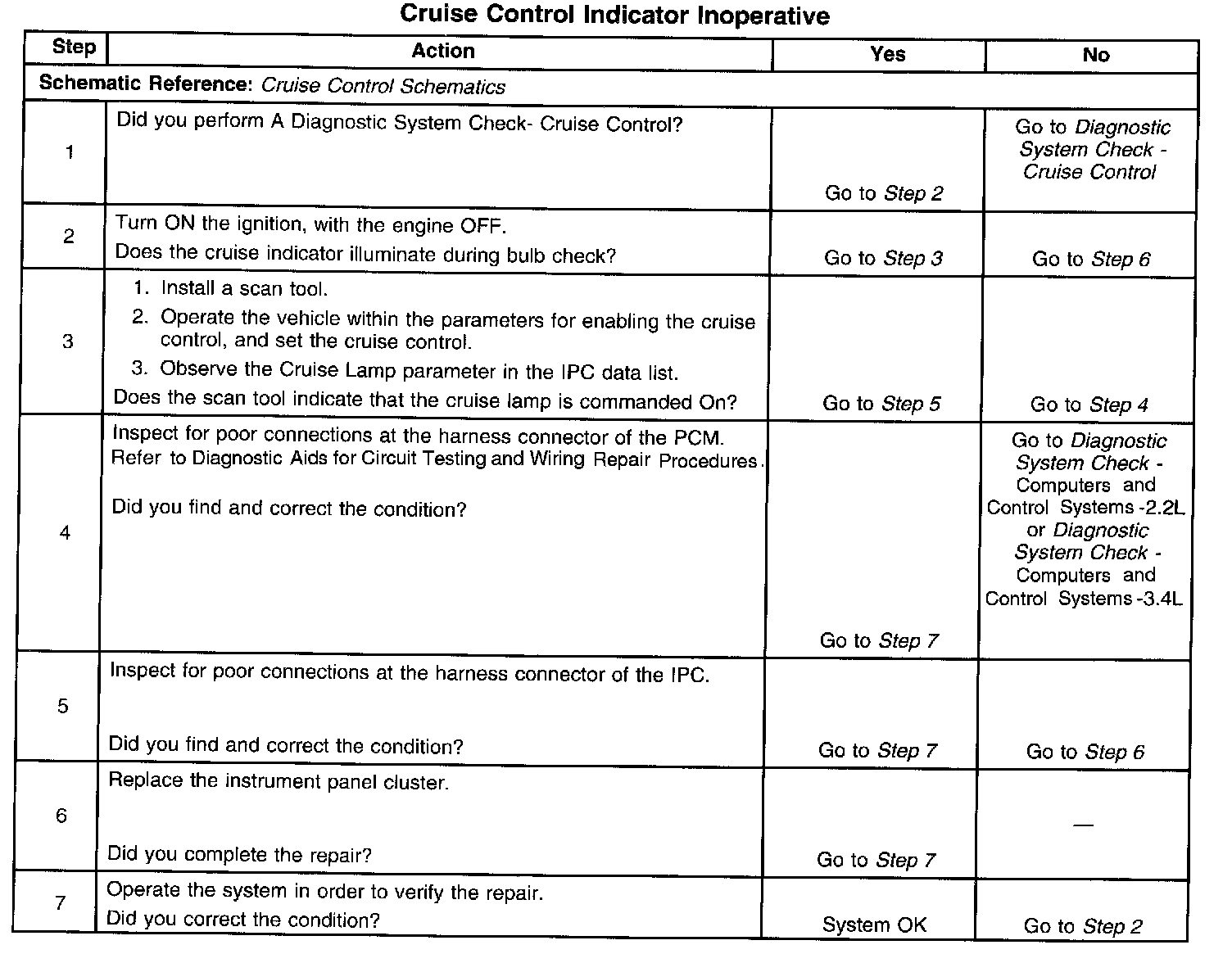 Cruise Control - Indicator Inoperative