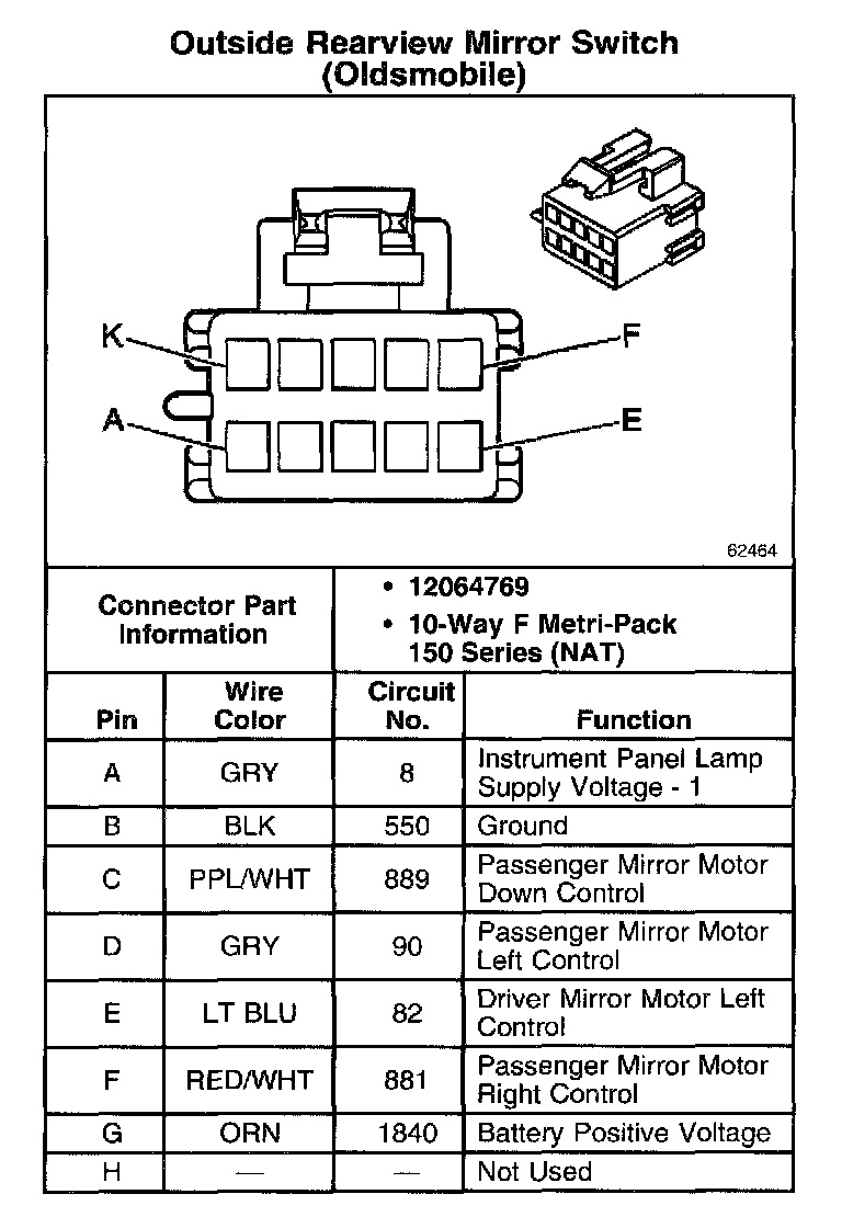 Outside Rearview Mirror Switch (Oldsmobile) Part 1: