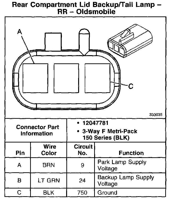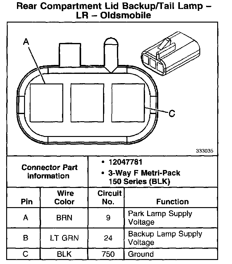 Rear Compartment Lid Backup/Tail Lamp - LR - Oldsmobile: